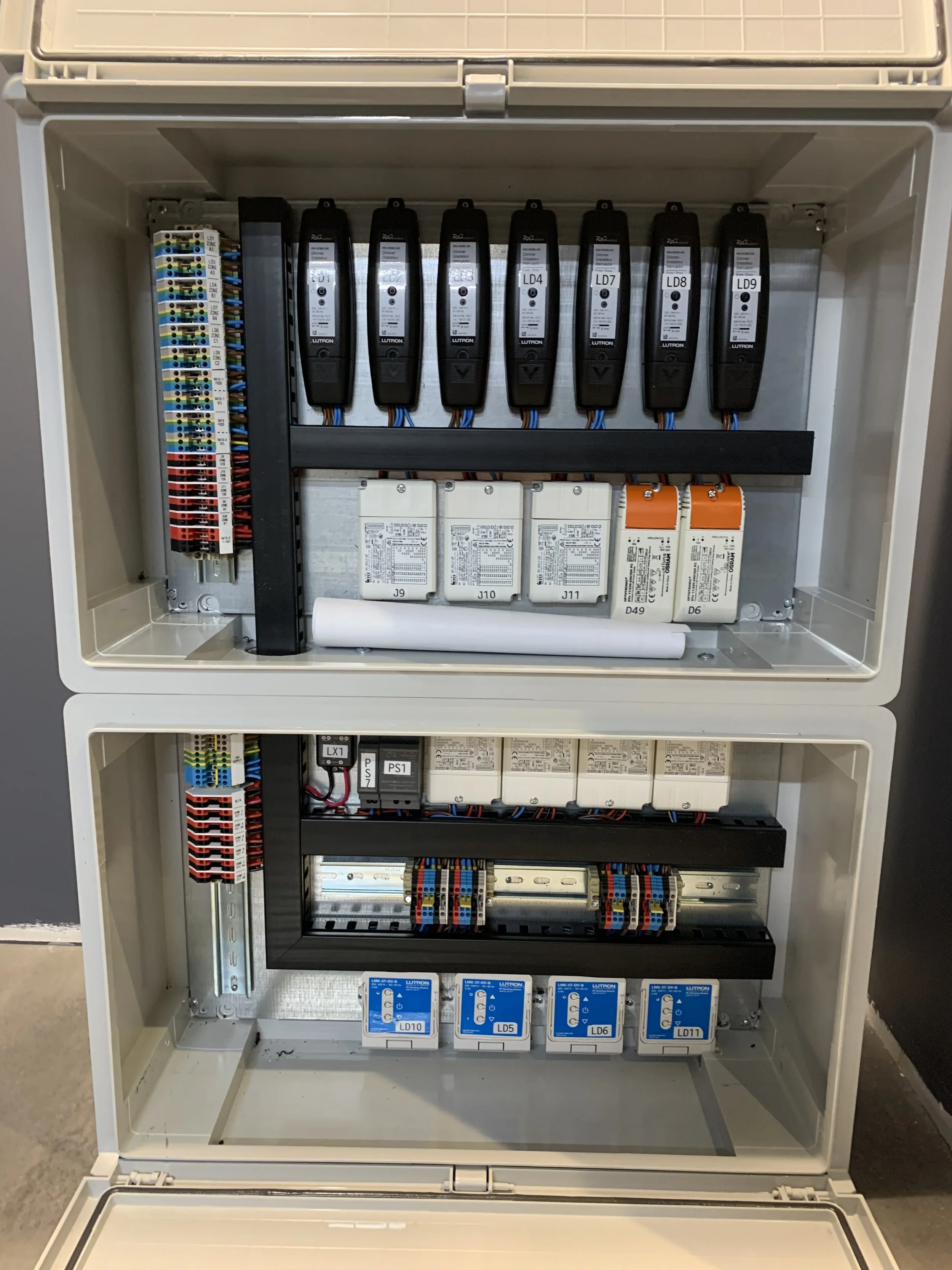 Custom-engineered lighting control panels designed and assembled specifically for each project, ensuring clean integration, long-term serviceability, and dependable system performance.